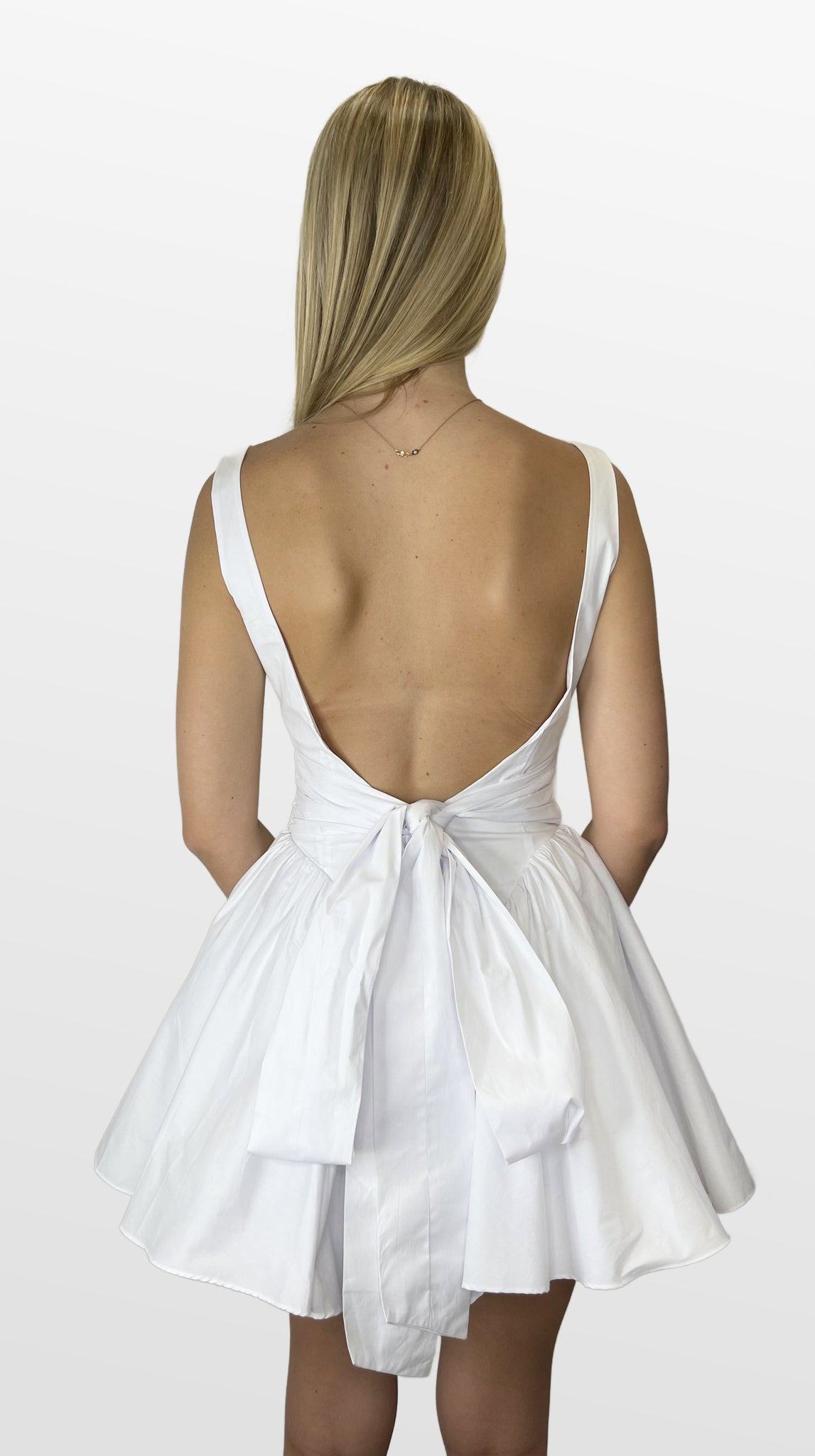 Elegant. Channel your inner ballerina with this beautiful dress. This dress features a fitted bodice and waistline to accentuate your figure, while the slight tulle lining gives an extra lift to the flared skirt. Perfect vacay dress for travel abroad or sorority events! Color- White 65% Cotton 32% Nylon 3% Spandex Lining- 97% Polyester 3% Spandex
